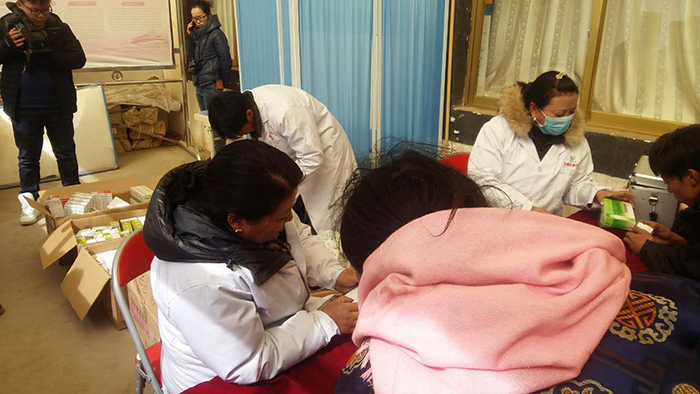 義診活動在下午三點(diǎn)半開始,前來就診咨詢的群眾絡(luò)繹不絕。醫(yī)務(wù)人員在為患病群眾把脈號診、開處方的同時(shí),結(jié)合那曲縣羅瑪鎮(zhèn)群眾常見病、多發(fā)病及高海拔地區(qū)的氣候特點(diǎn),給當(dāng)?shù)厝罕娞岢隽巳粘I铒嬍辰ㄗh,在疾病預(yù)防、降低常見病發(fā)病率方面提供生活指南。義診期間,醫(yī)療服務(wù)小分隊(duì)醫(yī)務(wù)人員加班加點(diǎn),共為羅瑪鎮(zhèn)的400余名群眾進(jìn)行了義診檢查,發(fā)放藥品價(jià)值2萬余元,在為患病群眾解除病癥、減輕病痛的同時(shí),切實(shí)溫暖了廣大群眾的心。