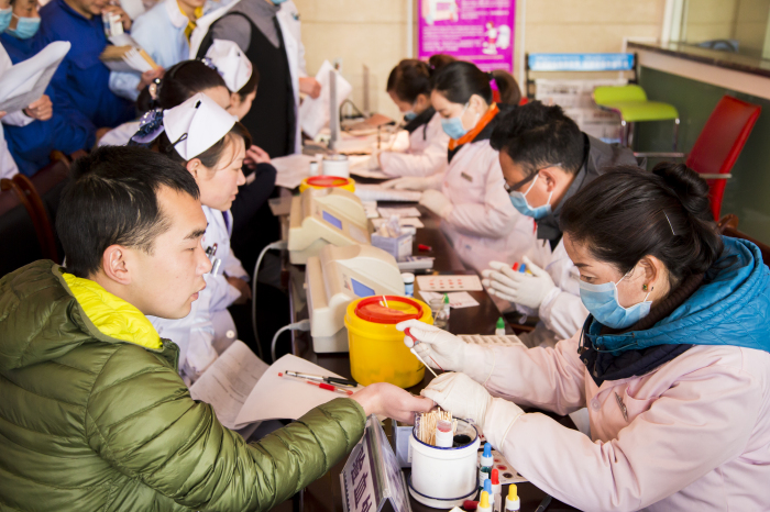 3月,春節(jié)和藏歷新年剛剛過去,自治區(qū)血液中心便出現(xiàn)用血緊張的狀況,血源告急。為了緩解我區(qū)用血緊張的局面,3月8日在阜康集團(tuán)王斌董事長的號召下,我公司組織117人(包括4名院外人士)參加無償獻(xiàn)血活動(dòng)。