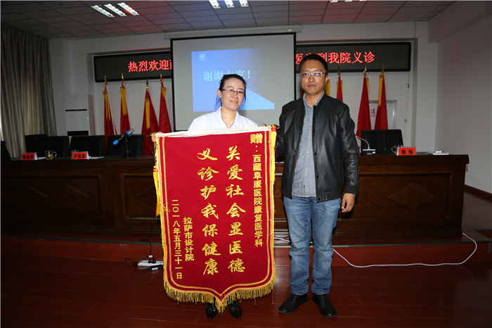 當天的活動受到了設計院干部職工的熱烈歡迎,大家踴躍咨詢、積極就診,現(xiàn)場氣氛輕松活躍。副院長尼扎代表拉薩市設計院向劉佳主任贈送了錦旗,感謝西藏阜康醫(yī)院康復醫(yī)學科為設計院廣大員工的辛苦付出。