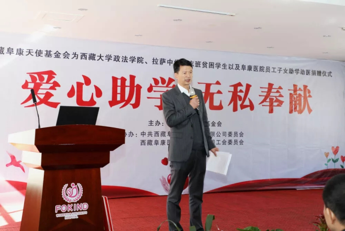 拉薩中學(xué)校長(zhǎng)陳飛,向西藏阜康天使基金會(huì)表示了衷心的感謝。他表示:阜康是西藏民營(yíng)醫(yī)療行業(yè)的典范,王斌董事長(zhǎng)在發(fā)展事業(yè)的同時(shí),從未忘記回饋社會(huì),成立阜康天使基金會(huì),慷慨解囊,幫助西藏教育事業(yè)的發(fā)展,切實(shí)體現(xiàn)了“仁心仁術(shù),止于至善”的阜康企業(yè)文化精神。