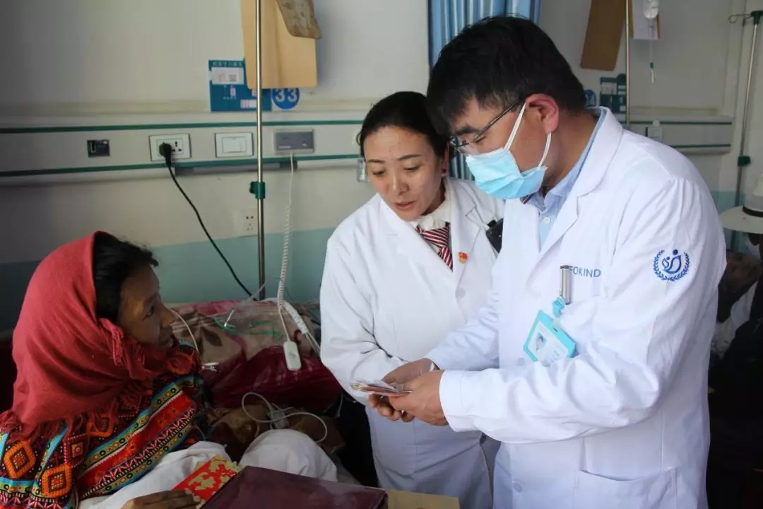 西藏阜康醫(yī)院呼吸內(nèi)科醫(yī)生將籌款送到嘎瑪手中