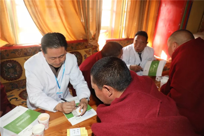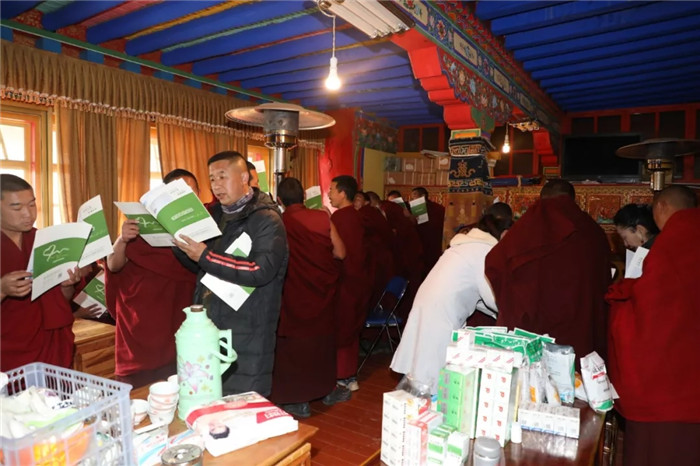 據了解,甘丹寺管委會安排223名僧侶于2019年12月19日至2020年1月15日來我院體檢中心分批進行了身體檢查,為了方便僧侶們取讀報告,西藏阜康醫(yī)院秉持著“用我們的知識和良知為人類健康服務”的企業(yè)宗旨,特意安排專家義診組帶著大家的體檢報告來到寺廟,為大家免費進行報告解讀并針對性的發(fā)放藥物。
