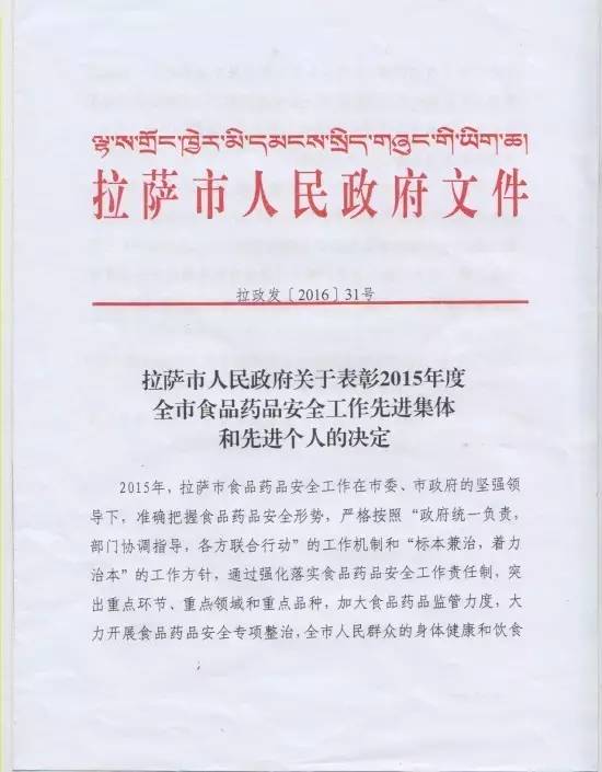 本次會(huì)議還就2015年度在全市食品藥品安全工作中表現(xiàn)突出的市農(nóng)牧局等19個(gè)縣(區(qū))、單位給予了表彰。西藏阜康醫(yī)藥發(fā)展有限公司也因在2015年食品藥品監(jiān)督管理工作中表現(xiàn)突出榮獲表彰并獲得“2015年全市食品藥品安全工作先進(jìn)集體”榮譽(yù)稱號(hào)。劉瀟瀟總經(jīng)理代表阜康醫(yī)藥發(fā)展有限公司接受了本次表彰。她表示阜康醫(yī)藥發(fā)展有限公司能夠獲得本次表彰是整個(gè)阜康的驕傲,在今后的工作中我們一定會(huì)珍惜榮譽(yù),再接再厲,充分發(fā)揮示范帶頭作用,努力再創(chuàng)工作佳績,為西藏食品藥品安全作出自己的貢獻(xiàn)。