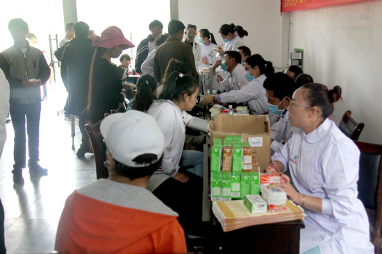 義診活動剛開始,義診臺就被圍個(gè)水泄不通,此外,黨支部的醫(yī)務(wù)人員們?yōu)榈群驒z查的殘疾人發(fā)放有愛心早餐及日常用品等。義診過程中,醫(yī)務(wù)人員分工協(xié)作,井然有序地為前來義診的殘疾人量血壓、測血糖、聽心率等,同時(shí)認(rèn)真問詢并聽取他們講述自己的病癥,為一些需要服藥的殘疾人開具處方和免費(fèi)發(fā)放藥品,并一一介紹藥品的服用方法、劑量等,也為一些長期服藥的殘疾人調(diào)整了治療方案,更耐心提醒他們要注意養(yǎng)成健康的生活方式,向他們宣傳健康保健知識。