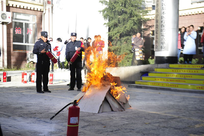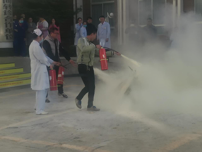 第二部分在我院住院區(qū)大院內(nèi),消防隊(duì)員進(jìn)行了現(xiàn)場演示,講解了如何使用滅火器,并現(xiàn)場點(diǎn)燃了一堆火,使用滅火器將大火撲滅,以直觀的方式,告訴醫(yī)護(hù)人員如何使用滅火器材;我院員工也派出后勤、臨床代表參加了演練。