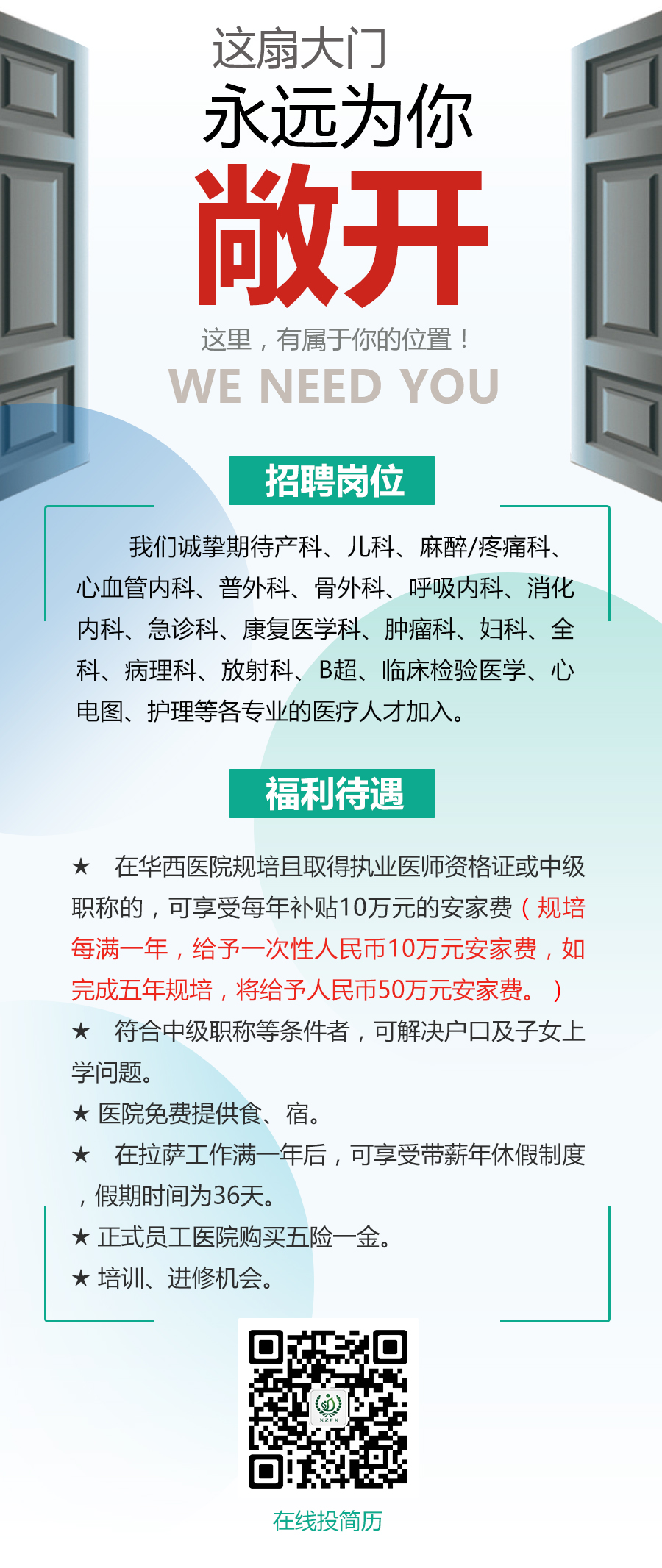 西藏阜康醫(yī)院冬季人才招聘工作在四川大學(xué)華西臨床醫(yī)學(xué)院開展!