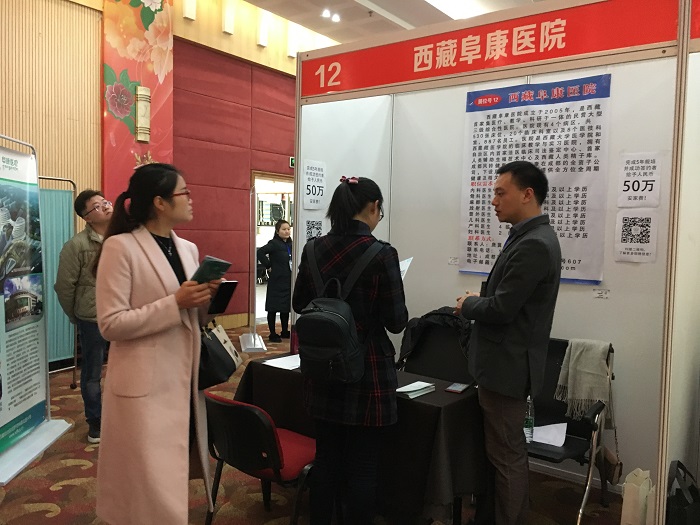 這場(chǎng)盛大的招聘會(huì)上云集了來(lái)自四川、廣東、云南、湖北、河南、新疆等全國(guó)各地的優(yōu)秀醫(yī)療機(jī)構(gòu),也包括來(lái)自雪域高原的我們——西藏阜康醫(yī)院。招聘會(huì)共收到現(xiàn)場(chǎng)投的求職簡(jiǎn)歷共10份,有檢驗(yàn)、外科、麻醉學(xué)、康復(fù)醫(yī)學(xué)、放射醫(yī)學(xué)、腫瘤專業(yè)。雖然簡(jiǎn)歷數(shù)量不多,卻是西藏民營(yíng)醫(yī)院在內(nèi)地著名醫(yī)學(xué)院招聘的歷史性突破。