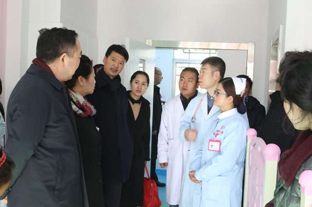 ●我院黨委書記王斌帶領(lǐng)三位領(lǐng)導(dǎo)參觀升級(jí)改造后的兒科住院部