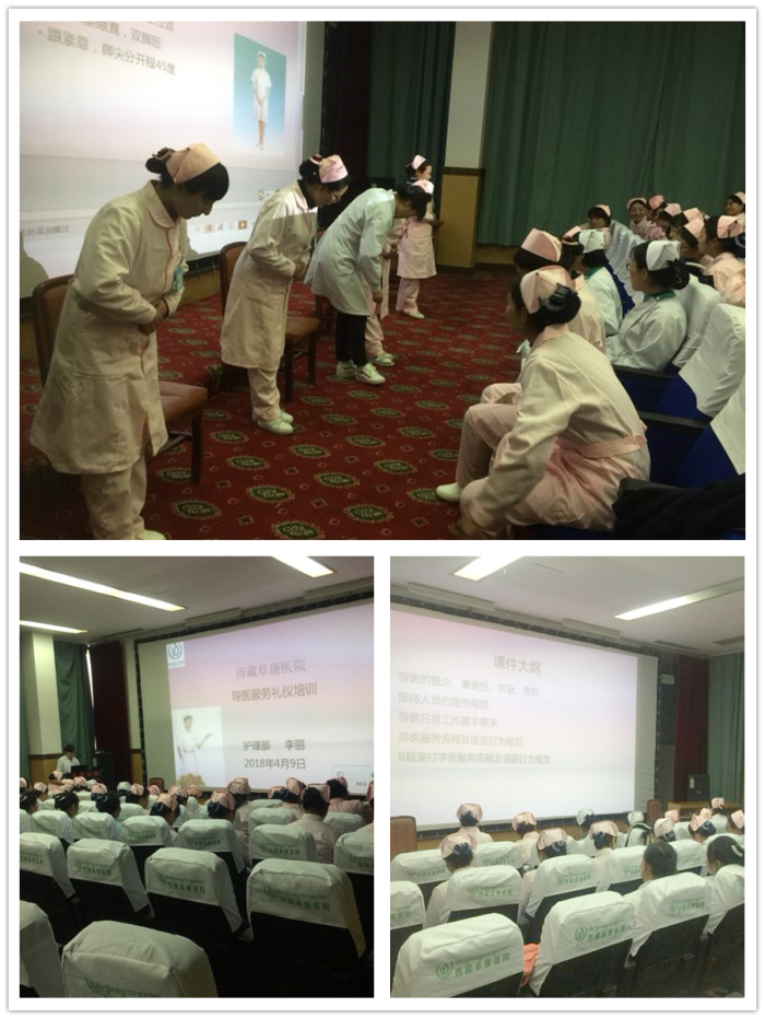 【概要】:2018年4月9日,西藏阜康醫(yī)院、西藏阜康醫(yī)院婦產(chǎn)兒童分院、西藏阜康醫(yī)院心腦血管分院三家醫(yī)院護(hù)理部組織開(kāi)展了導(dǎo)醫(yī)服務(wù)禮儀培訓(xùn),培訓(xùn)由護(hù)理部主任李麗主講并進(jìn)行了現(xiàn)場(chǎng)指導(dǎo)與考核,旨在規(guī)范服務(wù)禮儀,提高服務(wù)質(zhì)量。