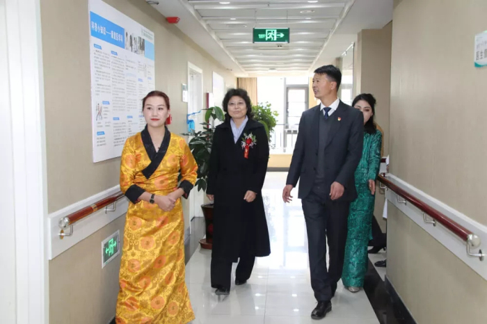 自治區(qū)民政廳黨組成員、副廳長(zhǎng)牛玉枝,拉薩市衛(wèi)生和計(jì)劃生育委員會(huì)黨委副書(shū)記、主任扎西德吉,西藏自治區(qū)民政廳社會(huì)福利和社會(huì)事務(wù)處處長(zhǎng)王大軍,西藏阜康醫(yī)療股份有限公司黨委書(shū)記、董事長(zhǎng)王斌共同為西藏阜康醫(yī)院醫(yī)養(yǎng)結(jié)合中心揭牌。之后牛玉枝、扎西德吉、王大軍、王斌及出席儀式的各位領(lǐng)導(dǎo)參觀(guān)了阜康醫(yī)院醫(yī)養(yǎng)結(jié)合中心。