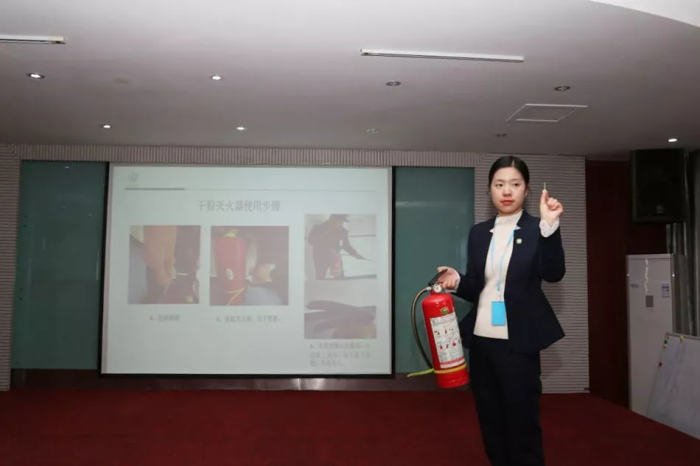 院辦副主任晉雪莉為大家演示滅火器的使用方法