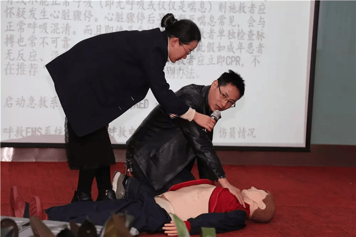 其中“消防知識”和“心肺復蘇:BLS”等課程的授課講師不但進行了理論知識的講解,而且?guī)ьI(lǐng)各位學員進行了實踐演練。