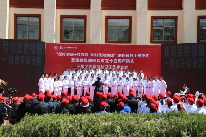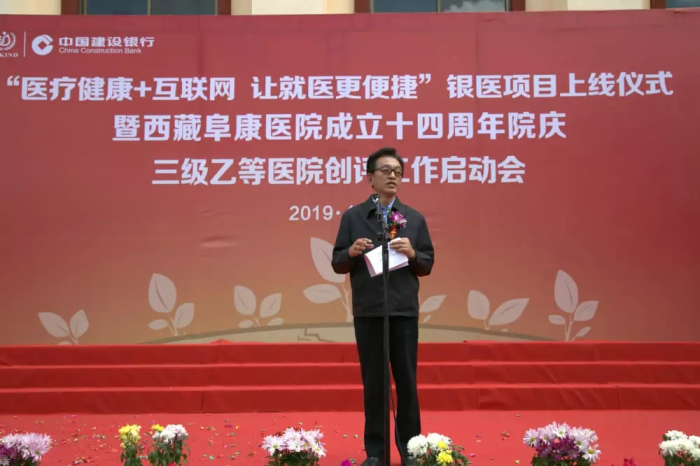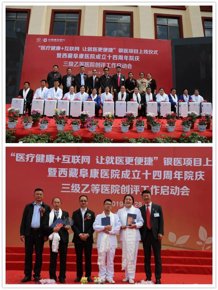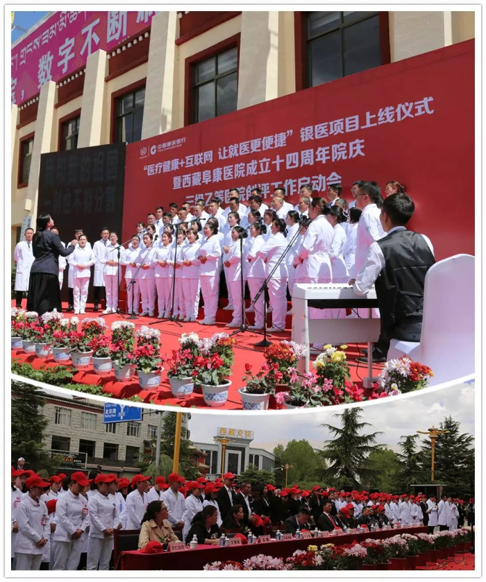 春日的圣城拉薩陽光明媚,生機(jī)盎然。2019年4月28日,注定是一個(gè)不平凡的日子!下午15時(shí),來自自治區(qū)政府部門、各大金融機(jī)構(gòu)、科技教育單位的12位嘉賓和阜康醫(yī)院的廣大醫(yī)務(wù)人員匯聚一堂,共同見證建設(shè)銀行西藏分行、西藏阜康醫(yī)院“醫(yī)療健康+互聯(lián)網(wǎng),讓就醫(yī)更健康”銀醫(yī)項(xiàng)目上線暨阜康醫(yī)院成立十四周年院慶三級(jí)乙等醫(yī)院創(chuàng)評(píng)工作正式啟動(dòng),標(biāo)志著在雪域高原上成功走過十四年光輝歷程的阜康醫(yī)院,正在一個(gè)全新的起點(diǎn)上承載著“健康西藏”的光榮使命再次揚(yáng)帆遠(yuǎn)航、整裝出發(fā)!