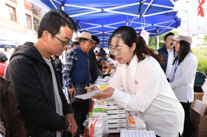 下午2點(diǎn),在西藏阜康婦產(chǎn)兒童醫(yī)院義診現(xiàn)場,聽說來自首都的專家醫(yī)生免費(fèi)義診和發(fā)放藥品,各族群眾聞?dòng)嵍鴣?,早早地排起了長隊(duì),在志愿者的幫助下,群眾們依次登記掛號(hào)。