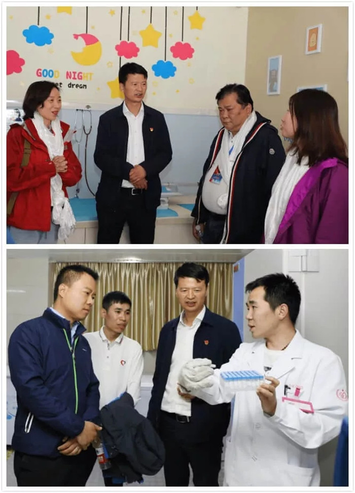 義診期間,中共中央統(tǒng)戰(zhàn)部七局處長郭鵬與“同心共鑄中國心”駐西藏秘書長趙士磊來到了阜康婦產(chǎn)兒童醫(yī)院詳細(xì)查看了正在井然有序進(jìn)行的義診現(xiàn)場,在王斌董事長陪同下參觀阜康婦產(chǎn)兒童醫(yī)院院區(qū),聽取并查看了我院人類輔助生殖醫(yī)學(xué)中心等特色科室的開展情況。