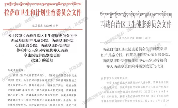 為此子女們主動申請重新回歸父母羽翼之下,合力爭取為西藏醫(yī)療衛(wèi)生事業(yè)添磚加瓦的政策支持。在區(qū)黨委、政府的親切關(guān)懷下,終于在2019年4月5日獲得自治區(qū)衛(wèi)健委批準合并,合并后的阜康為三級綜合醫(yī)院,床位520張。醫(yī)院分為四個院區(qū):西藏阜康醫(yī)院一院區(qū)(即林廓路原阜康醫(yī)院),西藏阜康醫(yī)院二院區(qū)(即娘熱路原阜康醫(yī)院住院部、心腦血管分院),西藏阜康醫(yī)院三院區(qū)(即羅布林卡路原西藏阜康婦產(chǎn)兒童分院),西藏阜康醫(yī)院四院區(qū)(仙足島原阜康體檢中心),所有院區(qū)均享受三級醫(yī)院政策。7月3日自治區(qū)醫(yī)保局同意阜康所有院區(qū)從8月1日起醫(yī)保報銷合為西藏阜康醫(yī)院一家,所有院區(qū)享受三級醫(yī)院的醫(yī)保報銷政策。