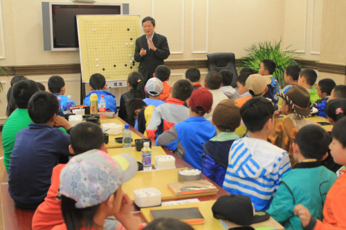 頒完獎項,本次拉薩市2015年“阜康杯”少兒圍棋錦標(biāo)賽也落下了帷幕。最后,我們有幸請到了國手九段的曹老為我們拉薩棋院的小棋手們講課,課上,一位位小棋手們端正坐好,聚精會神地聆聽著曹老講 課,生怕錯過什么內(nèi)容。而曹老親切祥和的細微講解,加之其不時跟小朋友們提問、互動,也讓得這節(jié)特殊寶貴的課堂變得其樂融融!感謝曹老于百忙之中抽出時間為我們的小棋手講課,相信我們的小棋手們在這樣一節(jié)課堂中,必然受益良多。