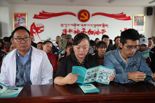 圖為自治區(qū)殘聯(lián)黨組成員、副理事長拉姆卓瑪(中)參加“殘疾預(yù)防進(jìn)社區(qū)”活動