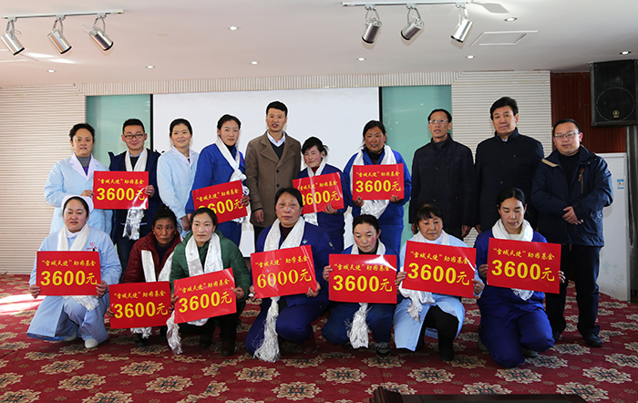 王董事長表示,今天到此的都是阜康最基層、最一線的人員,是她們默默無聞工作,創(chuàng)造了優(yōu)美、整潔的就醫(yī)環(huán)境,使來阜康的每一個人,對阜康有一個干凈整潔的第一感受。所以,我要感謝他們,感謝她們的辛勤勞動換來了阜康的美好環(huán)境。說實話,之前我曾多次考慮過為了阜康的發(fā)展,是不是將阜康的保潔工作外包給更專業(yè)的人員,用更專業(yè)、更省錢的方式來管理。但是,想到她們這群可愛的藏族姑娘,我又一次次的放棄了這個念頭。因為她們也是我們阜康這個大家庭的一員。我們爭取努力,在2020年,讓她們和我們阜康的每一個人一起奔小康,借用習(xí)大大的一句話“一個都不能少”。最后,在新年來臨之際,祝愿阜康的每一位員工都不再需要阜康“雪域天使基金會”的幫助!