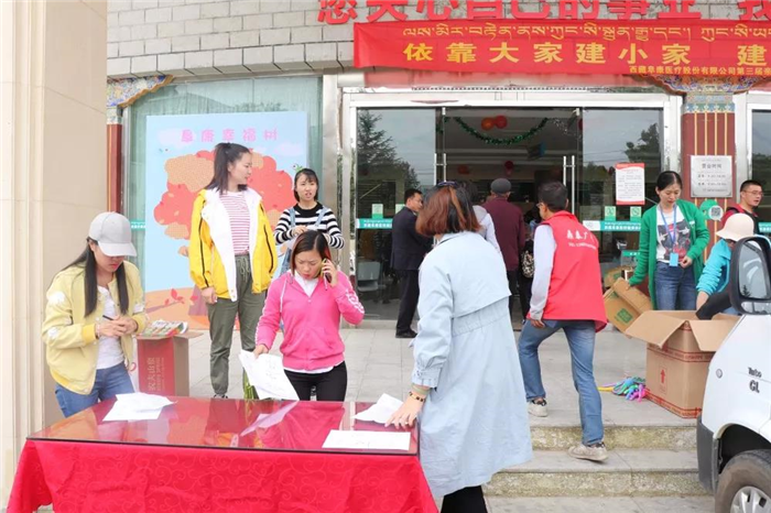 西藏阜康醫(yī)療股份有限公司黨委書記、董事長(zhǎng)在活動(dòng)現(xiàn)場(chǎng)為探親的阜康親人們獻(xiàn)上祝福,并表示親人們?cè)诓仄陂g,如遇上困難,公司會(huì)全力提供幫助。