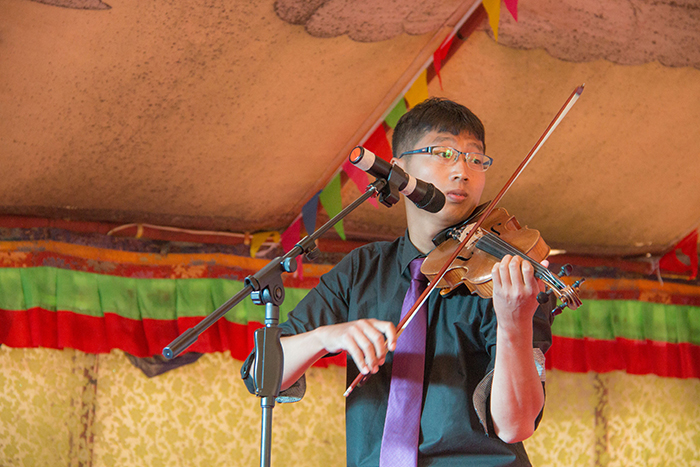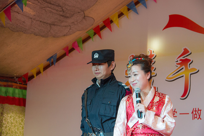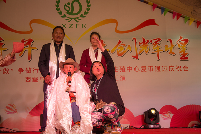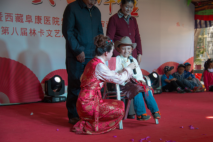 看藏裝典雅,賞舞姿婀娜。在三位主持人熱情洋溢的主持下,一曲優(yōu)雅典美的藏舞《芒康弦子》正式拉開了本次林卡文藝匯演的帷幕,也再度點燃了大家的林卡情懷!隨后,由醫(yī)院各科室員工帶來的諸如藏語歌曲演唱、小提琴演奏、架子鼓演奏、吉他演奏、古箏演奏、軍禮表演、現(xiàn)代舞蹈、獨舞、歌唱、小品、相聲、T臺秀、大合唱等一系列精彩紛呈的節(jié)目應接不暇地呈現(xiàn)在大家眼前,讓現(xiàn)場觀眾為之歡呼雀躍,好不開懷。同時,在本次的林卡文藝匯演中,還有一個十分特殊的節(jié)目——一個名為塔巴次仁的藏族小男孩及其家屬為我們全體阜康工作人員寫來一封感謝信,并在林卡演出現(xiàn)場為大家演唱了一首《感恩的心》。