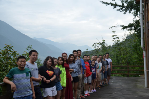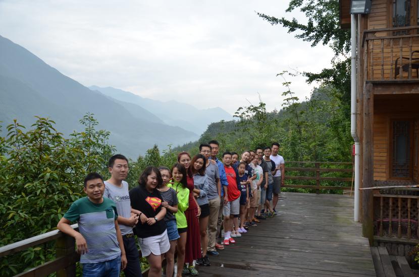 2016年8月25日,在精心的策劃準(zhǔn)備后,全體員工向距離成都70多公里的都江堰市虹口鄉(xiāng)出發(fā),錯(cuò)開(kāi)出行高峰期,很快就到達(dá)了都江堰市區(qū),再經(jīng)過(guò)近10余公里的綿延的盤(pán)山路,車(chē)隊(duì)首先到達(dá)虹口區(qū)山頂(虹口區(qū)是著名的原生態(tài)保護(hù)區(qū)),雖然已是沉陽(yáng),但一陣陣清新的空氣仍伴隨習(xí)習(xí)微風(fēng)撫面而來(lái),久違了美麗的群山,大家在山頭稍作停息,眺望云霧環(huán)繞的眾山,心曠神怡,不斷的拍照留念,捕捉這心動(dòng)的一刻。