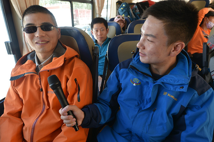 對于專業(yè)技術裝備的使用,張洪的接受能力也更強,很快就能完全獨立并且熟練操作這些裝備。張洪說:“我主要的問題就是看不到,不知道前邊的方向和哪條路線是安全的。但是這些問題都不是問題,攀登的時候會有一條安全繩,看不到但是卻能摸得到,沿著這條繩子往上都是安全的,我只要沿著它一步一步往上攀登,就能登上山頂。話聽著很簡單,但還是很難想象如此陡峭的山峰,如此厚重的積雪,一個盲人要克服多少困難才能登頂。”