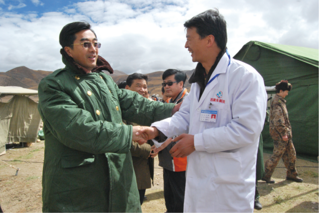 “早到一秒鐘就能多救一條人命”阜康醫(yī)院的董事長(zhǎng)王斌自從知道地震了就在辦公室里坐不住了。“快去打聽地震位置和災(zāi)情!”,“通知急診科準(zhǔn)備藥品和急救器械。”,“給司機(jī)打電話,去檢查越野車和救護(hù)車,隨時(shí)待命”。他的秘書被他使得團(tuán)團(tuán)轉(zhuǎn)。’下午6點(diǎn)多,終于確定了地震震中的確切位置并且知道了有小部分人員傷亡的情況,自治區(qū)紅十字會(huì)和阜康醫(yī)院緊急救援隊(duì)由王斌董事長(zhǎng)帶隊(duì)奔赴災(zāi)區(qū)。途中,電視臺(tái)記者得知這一消息打電話給他,希望做一些采訪“我們知道阜康醫(yī)院曾參加過(guò)四川地震的救援工作,這次你們又在第一時(shí)間奔赴地震現(xiàn)場(chǎng),希望王董事長(zhǎng)在出發(fā)前接受一下我們的采訪。”“對(duì)不起,我們已經(jīng)走到堆龍啦,現(xiàn)在對(duì)我來(lái)說(shuō)最重要的是早一點(diǎn)到現(xiàn)場(chǎng)多救幾個(gè)傷員,采訪等我們回來(lái)再說(shuō)吧,你要知道,早到一秒鐘也許就能多挽救一條人.....