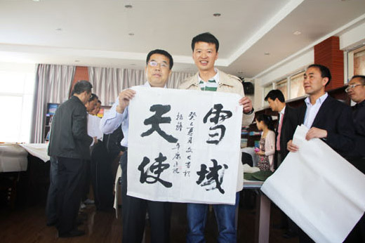 董昭禮主席對(duì)此非常高興地說(shuō):“感謝在西藏工作的安徽人士的熱情款待,也感謝阜康集團(tuán)為我們提供書畫交流的場(chǎng)所,更感謝王斌董事長(zhǎng)的細(xì)心照顧。扎西德勒!