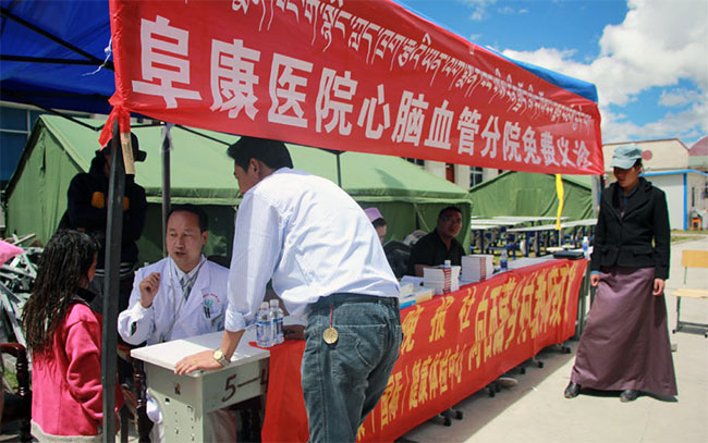 7月9日早上9點(diǎn),由西藏阜康(國際)健康體檢中心、西藏阜康醫(yī)院心腦血管分院義診隊(duì)的醫(yī)護(hù)人員帶上價(jià)值3000余元的藥品,從拉薩啟程,分別來到位于當(dāng)雄縣最偏遠(yuǎn)的烏瑪鄉(xiāng)第二中心小學(xué),并于第二天趕到位于當(dāng)雄縣海拔最高的納木湖鄉(xiāng)中心小學(xué),為這兩所學(xué)校的師生進(jìn)行免費(fèi)體檢。