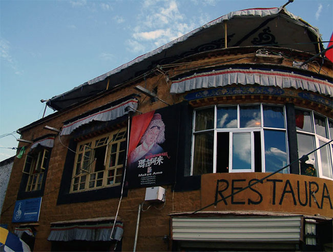 在拉薩工作快5年,第一次去了瑪吉阿米,這是一個(gè)愛(ài)情傳說(shuō)醞釀岀來(lái)的藏餐廳。為了倉(cāng)央嘉措與瑪吉阿米的邂逅傳說(shuō),為了感悟詩(shī)人“在那東山頂上,升起皎潔月亮,瑪吉阿米的面容,漸漸浮現(xiàn)心上”那句情詩(shī),為了尋覓瑪吉阿米的足跡,我順著八廓街繞到了東南角,一座橙黃色三層藏式小樓映入眼簾。