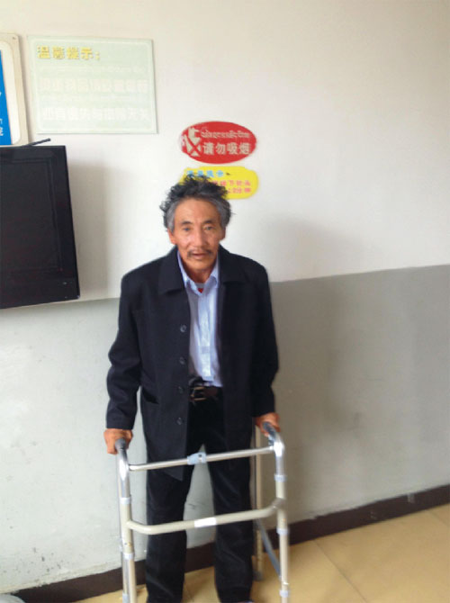 2014年06月25日,59歲的巴旦老人,不遠數(shù)千公里,輾轉數(shù)日來到我院。此時老人行走困難,手中的拐杖早已磨損嚴重,勉強行走帶來的疼痛使老人消瘦的臉上滿是痛苦。老人此行的唯一目的便是治愈伴隨數(shù)十年的病痛,丟掉拐杖,自如地行走。