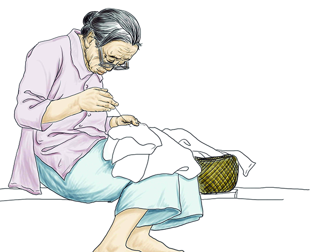 母親呵,每當(dāng)看到您那竹枝的雙手,腳下的千層底卻已不知遺落何方?