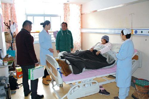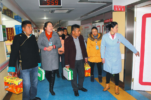 2015年2月19號,西藏阜康醫(yī)院、阜康醫(yī)院婦產(chǎn)兒童分院、阜康醫(yī)院心腦血管分院及阜康(國際)健康體檢中心在院領(lǐng)導(dǎo)的帶領(lǐng)下,去慰問不能出院和家人團(tuán)聚的患者。醫(yī)院為所有住院患者送上了一份新鮮的水果禮盒及一箱純牛奶。