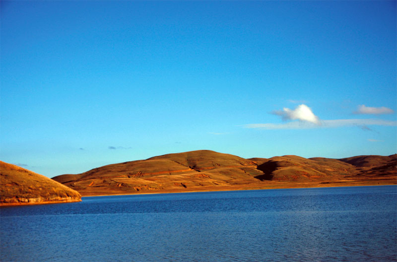 出了宜賓風(fēng)景就大不一樣,時(shí)而沿著高山峽谷在走,時(shí)而又攀升在碧綠的盤山公路。行至昭通,另一片天了,天空蔚藍(lán)蔚藍(lán),云朵開(kāi)始無(wú)遮無(wú)攔,大朵大朵的掛在頭頂,而空氣也開(kāi)始變得稀薄。眼前是大片大片黃褐色的山巒,樹(shù)木卻并不多,高速公路狀況極差,路兩旁的民居以平房居多,偶見(jiàn)一些小孩兒,三三兩兩。