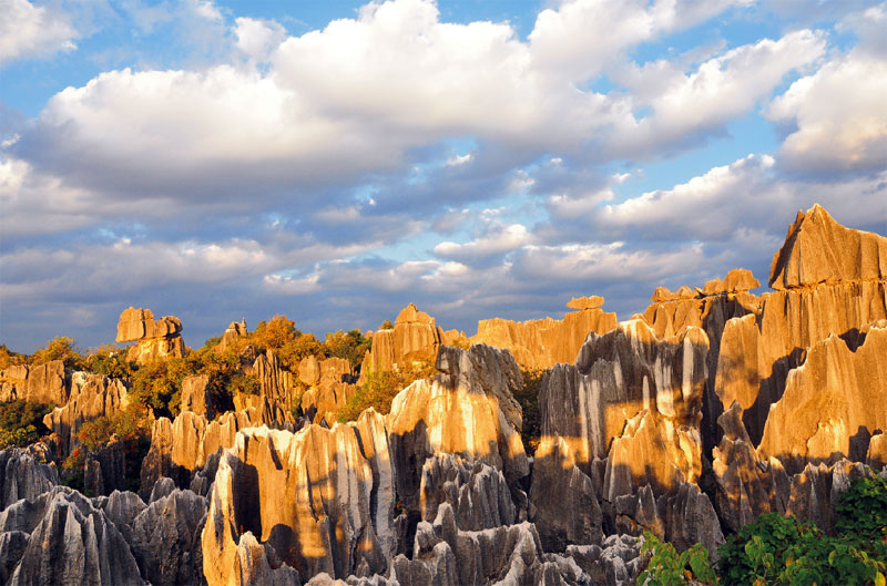 石林是最后一站(赫然發(fā)現(xiàn)小時(shí)候大爸煙盒上的畫(huà)兒就是石林)。大自然鬼斧神工,造化神秀,參天的巨石中開(kāi)辟出僅一人的路來(lái),一片石頭形成了一方小小的世界,這里是石頭的王國(guó)。石林的石頭據(jù)說(shuō)和周圍地質(zhì)都不同,也許是天外來(lái)石?悄悄地?fù)炝艘恍K帶回家。在石林前穿著少數(shù)民族服裝來(lái)了個(gè)全家福。