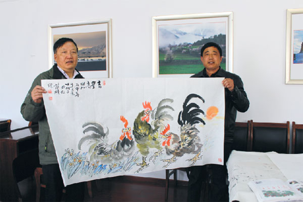 3月28日受自治區(qū)文聯(lián)黨組書記兼副主席沈開運(yùn)邀請(qǐng)陳明文先生在自治區(qū)文聯(lián)會(huì)議室作文化交流。交流會(huì)上陳明文先生展示了自己的近期作品,沈開運(yùn)主席代表自治區(qū)文聯(lián)收錄了其畫作《吉星高照》。