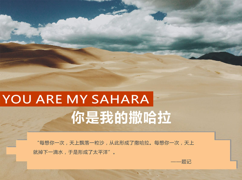 回想起第一次與你邂逅是在你《撒哈拉沙漠的故事》里,走進(jìn)你的撒哈拉,即使這里狂風(fēng)驟沙,我仍可見你內(nèi)心深處的安寧與幸福,你仿佛化作一只輕柔的蝶穿梭在這片風(fēng)塵里,尋覓著這里每一粒沙,每一顆石,每一縷風(fēng),洋溢著生活里的寧?kù)o與美好,只因那最愛你的蝶一直陪在你身旁,如此簡(jiǎn)單。
