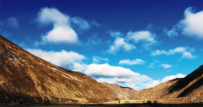西藏也是一個美麗神奇的地方,這里有規(guī)模宏大的布達拉宮,神奇的雪山,遼闊的草原,寧靜的湖泊,湛藍的天空,潔白的云彩,巍峨的喜馬拉雅山,雄偉的珠穆朗瑪峰,神圣的岡底斯山,奔騰的雅魯藏布江……這里有著無與倫比的美,黝黑的大山彰顯著西藏特有的包容和豪邁,當你走近他,你會感受到就像巨大的腕臂將你擁入懷中,讓你體會到他的寬廣和容納。你也可以手捧一汪清澈的湖水,伏面而洗,去感受那份圣潔,去體味那份圣潔給你的凈化。當然你也可以來到藏族同胞家中,去享受那特有的熱情和獨有的待客方式,去接受主人潔白哈達的對遠方朋友的祝愿,品品女主人親手為你斟滿的散發(fā)著濃郁奶香味的酥油茶和爽醇的青稞酒,再向天空拋灑男主人遞過來的“切瑪”,相互道一聲“扎西德勒”,然后和主人嗑出滿屋的歡聲笑語。你還可以在清晨登上山頂,去欣賞那飄動的經(jīng)幡和裊裊炊煙裝嵌的村落,去聽聽牛羊的第一聲歡叫,去看看云霧環(huán)繞又逐漸顯現(xiàn)的山間古寺,去捋捋自己那被世俗濁染的心靈,敞開心扉地去沐浴第一縷陽光,讓自己的心靈和靈魂接受一次圣潔的洗禮。
