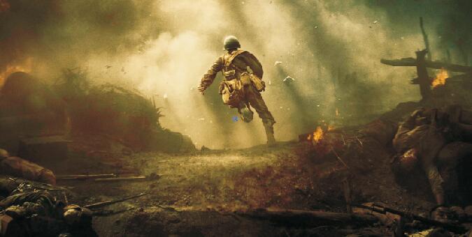 自有聲電影問世以后,好萊塢對(duì)實(shí)感近乎偏執(zhí)地追求,改寫了全球的觀影標(biāo)準(zhǔn),也讓好萊塢后來居上,遠(yuǎn)超歐洲同行。梅爾·吉布森更是擅長用暴力和血腥表現(xiàn)戰(zhàn)場(chǎng)的實(shí)感和戰(zhàn)爭(zhēng)的殘酷:美軍戰(zhàn)列艦406毫米主炮的轟鳴,勃朗寧重機(jī)槍的子彈呼嘯,M4坦克的陣陣碾壓,還有迸飛的殘肢,爆裂的人頭……絞肉機(jī)般的鋼鋸嶺成了人間地獄,與它極端對(duì)立的正是主人公戴斯蒙德·道斯的醫(yī)者仁心。