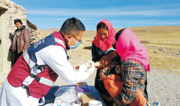 索南,革吉鎮(zhèn)衛(wèi)生院院長,全科醫(yī)生,能接生孩子能看病,包蟲病防治工作任務(wù)繁重,手下的醫(yī)務(wù)人員抽不開身,他親自帶隊分離標本、全血離心,兢兢業(yè)業(yè),工作起來一坐就是一整天。牧區(qū)篩查他帶領(lǐng)團隊卷上鋪蓋帶上方便面一走就是一兩個星期,家不要了,娃不要了,路途遙遠,崎嶇顛簸,腰也不要了。