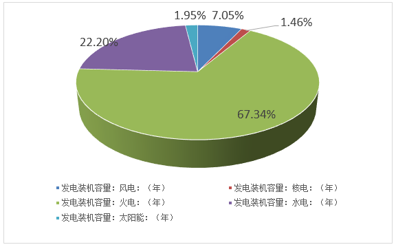 圖3:2014年國內(nèi)五種發(fā)電裝機(jī)容量占比分布圖